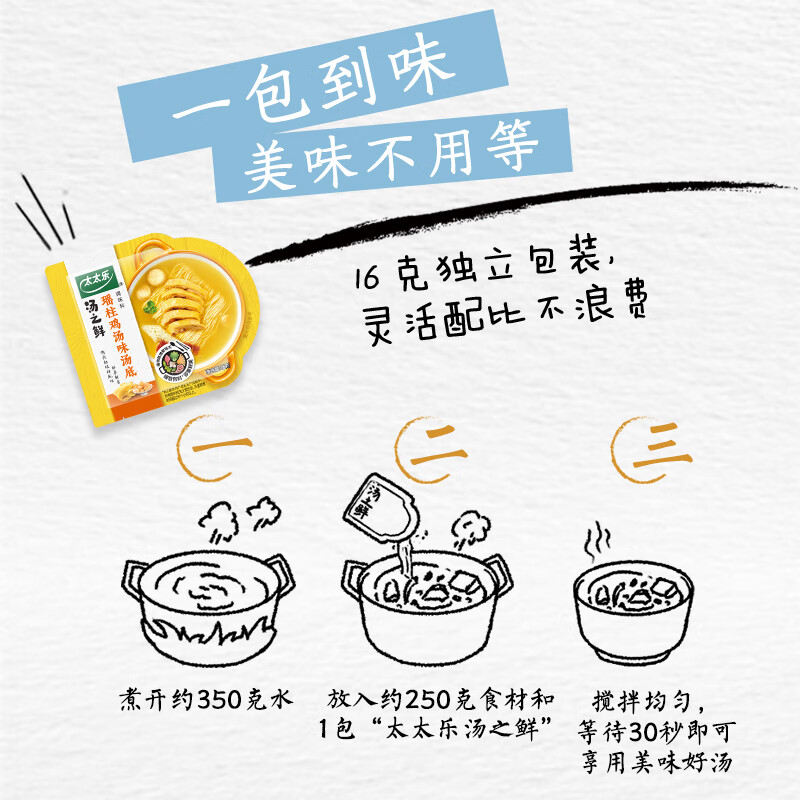 商品名称:太太乐汤底调味料 汤之鲜系列 汤底调味料瑶柱鸡汤味112g 火锅底料
