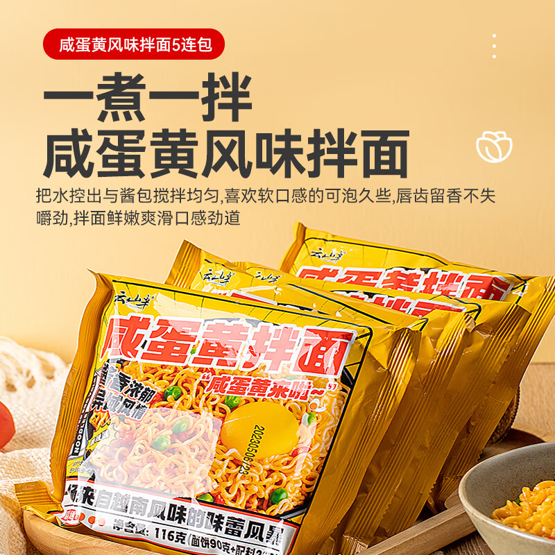 云山半咸蛋黄拌面速食方便面泡面干拌面懒人食品夜宵即食网红拉面116g*5