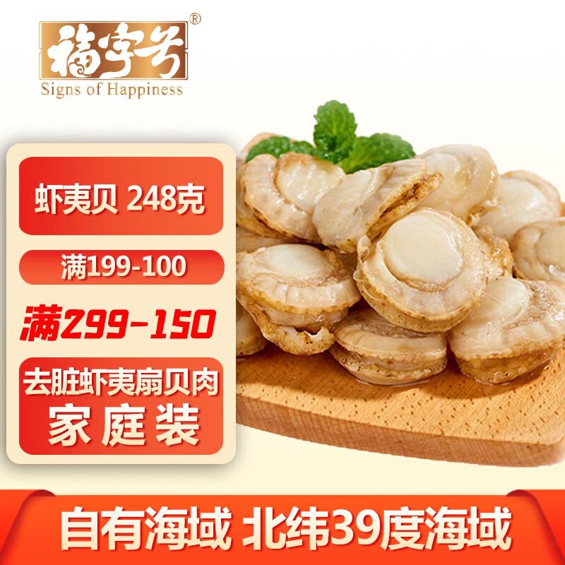 福字号冷冻大号虾夷扇贝肉去脏无沙250g无冰帆立贝粉丝烧烤聚餐