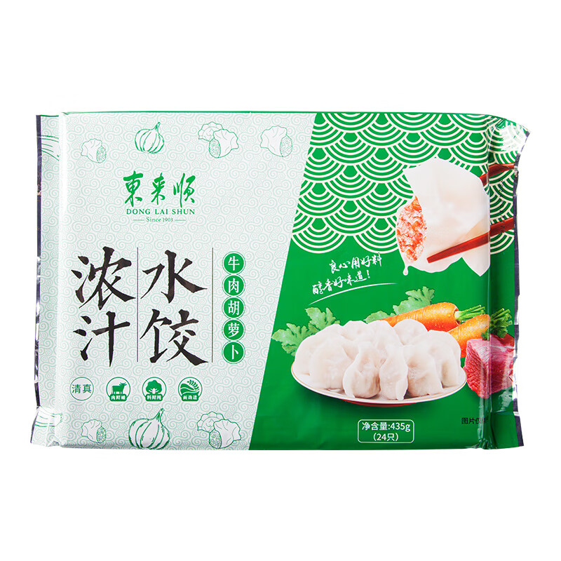 商品名称:东来顺牛肉胡萝卜水饺435g(24只)饺子蒸饺煎饺早餐夜宵速冻清真食品