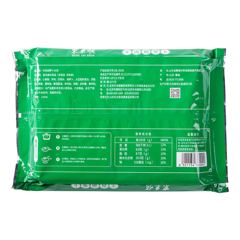 商品名称:东来顺 羊肉胡萝卜水饺435g(24只)饺子蒸饺煎饺早餐夜宵速冻清真食品