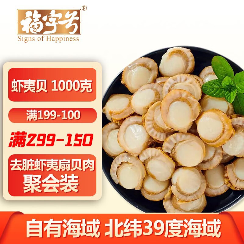 商品名称:福字号冷冻生鲜虾夷扇贝肉 去脏无沙2斤大号帆立贝无冰烧烤季