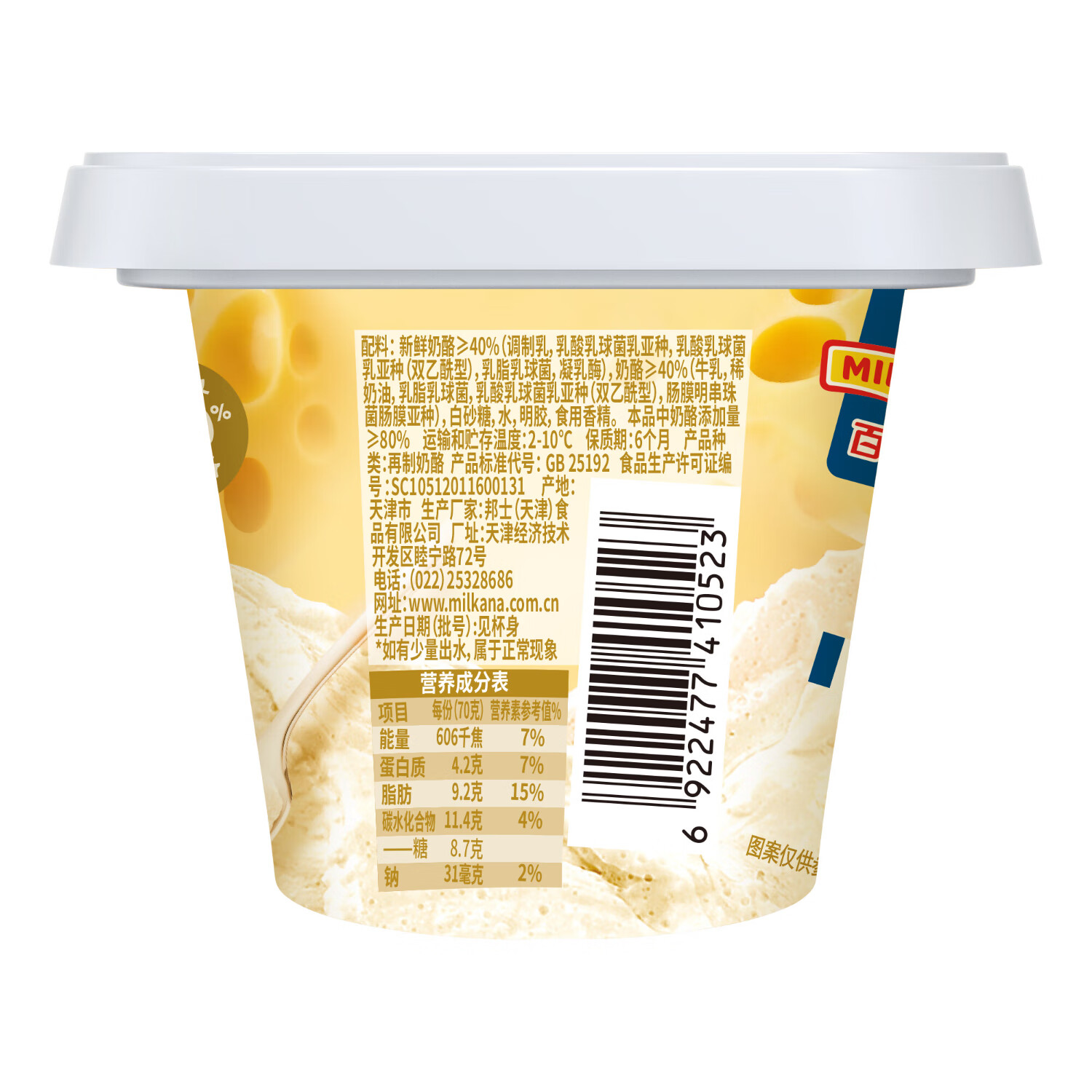 商品名称:百吉福(MILKANA) 一杯芝士下午茶奶酪零食 法式甜品原味70g*6杯 冷藏 休闲零食