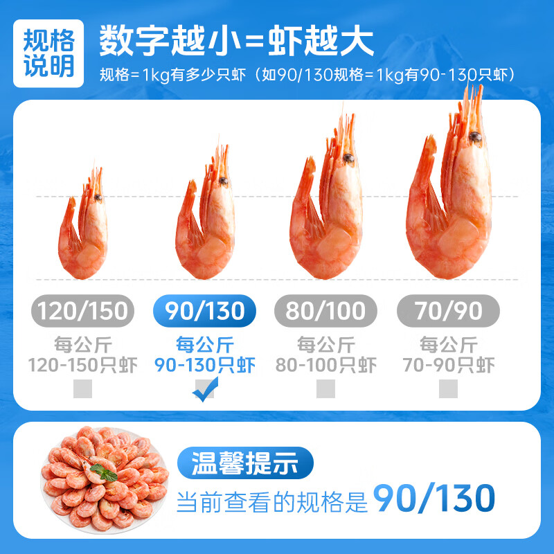 商品名称:美加佳熟冻北极甜虾腹籽净重3斤 90/130规格 熟冻甜虾 海鲜水产