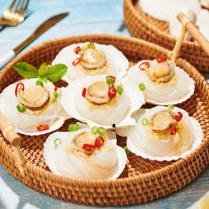 商品名称:福字号冷冻蒜蓉粉丝虾夷扇贝大号6只270g去内脏无沙烧烤深海餐