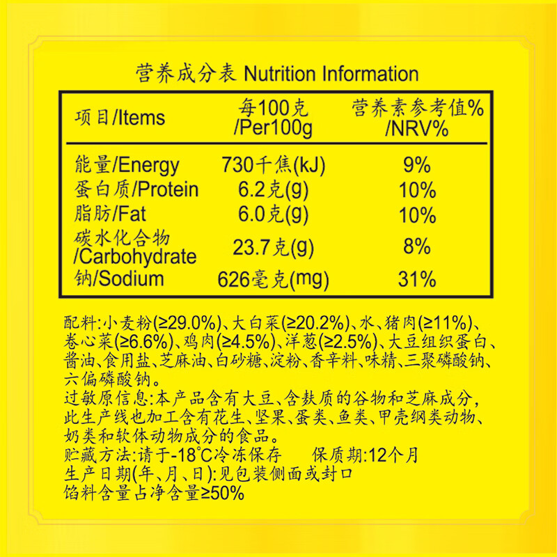 商品名称:湾仔码头大白菜猪肉水饺1320g66只早餐速食半成品面点速冻饺子