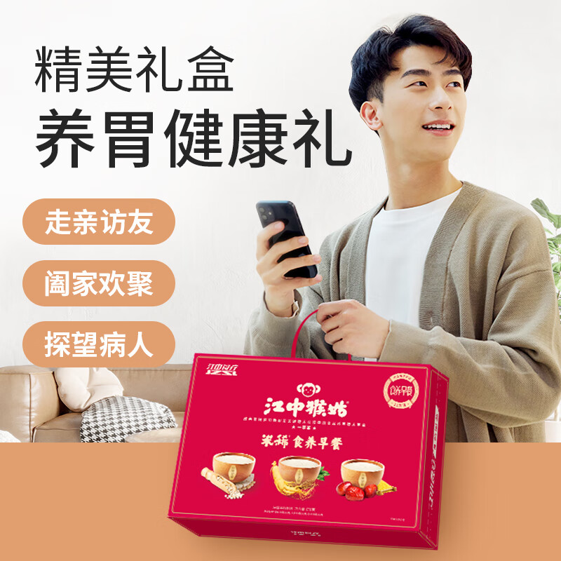 江中猴姑米稀原味人参青稞早餐猴头姑养胃猴头菇粉21天装米稀送礼盒630g