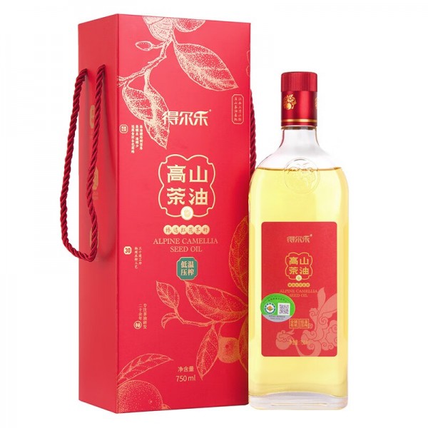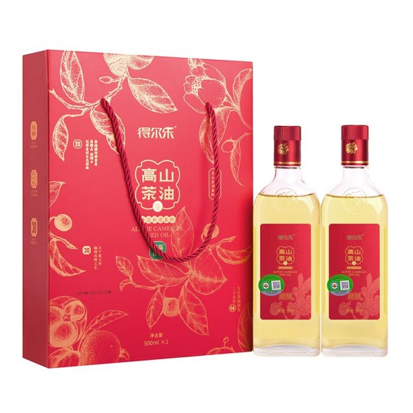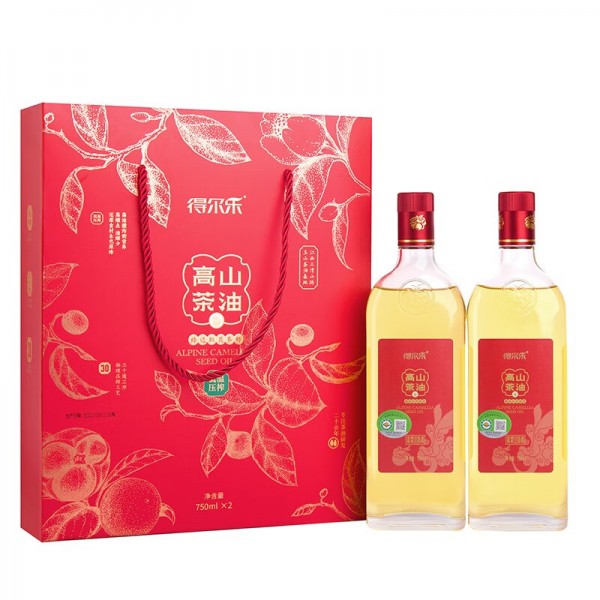 得尔乐 茶油 有机高山红花 山茶油礼盒750ml*2瓶低温冷榨食用油