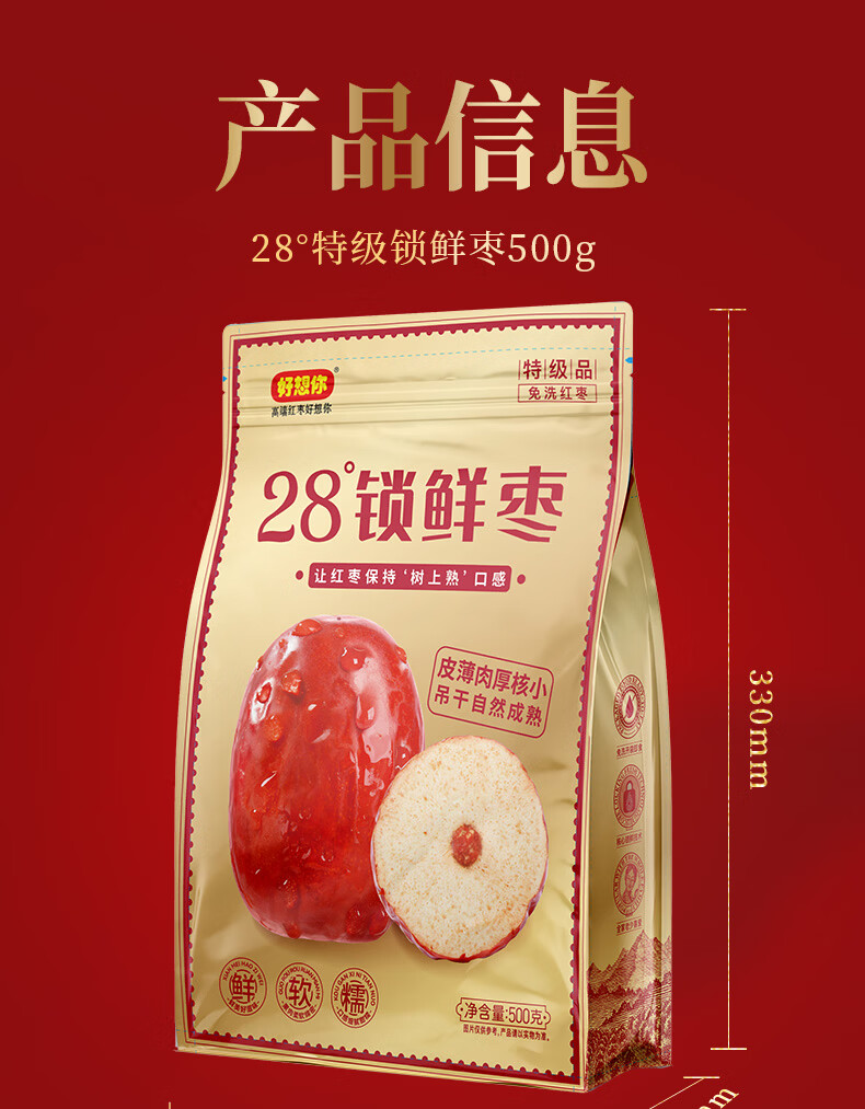 商品名称:好想你 28°特级锁鲜枣500g/7日装 蜜饯果干红枣新疆免洗