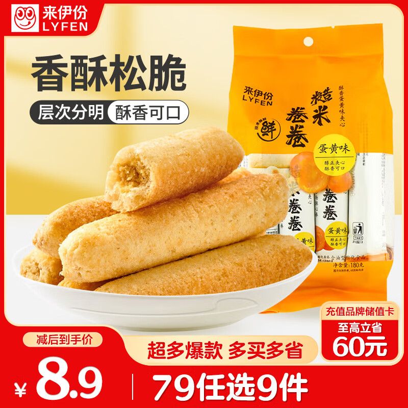 商品名称:来伊份糙米卷蛋黄味180g 米果卷能量棒膨化食品办公室休闲零食独立包装
