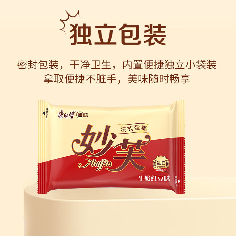 康师傅 妙芙蛋糕 红豆味200g 糕点点心饼干 早餐面包零食(包装随机)