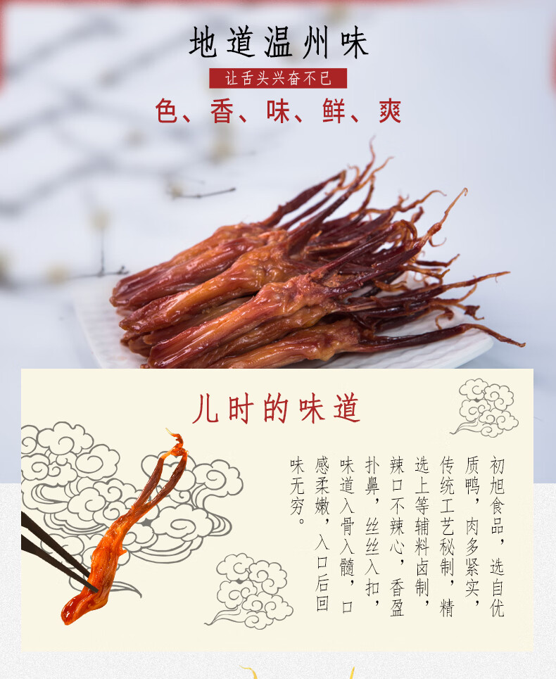 初旭食品(chuxufood) 温州酱鸭舌68g卤香味 温州特产卤味鸭舌头肉干肉脯休闲小吃