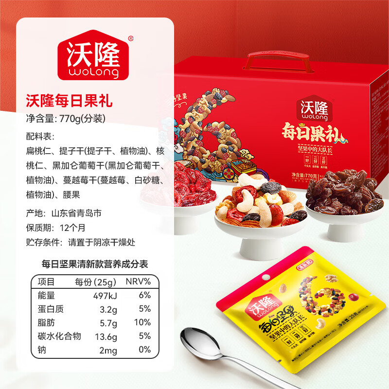 商品名称:沃隆每日坚果770g/28袋小零食果干混合坚果礼盒即食休闲零食大礼包