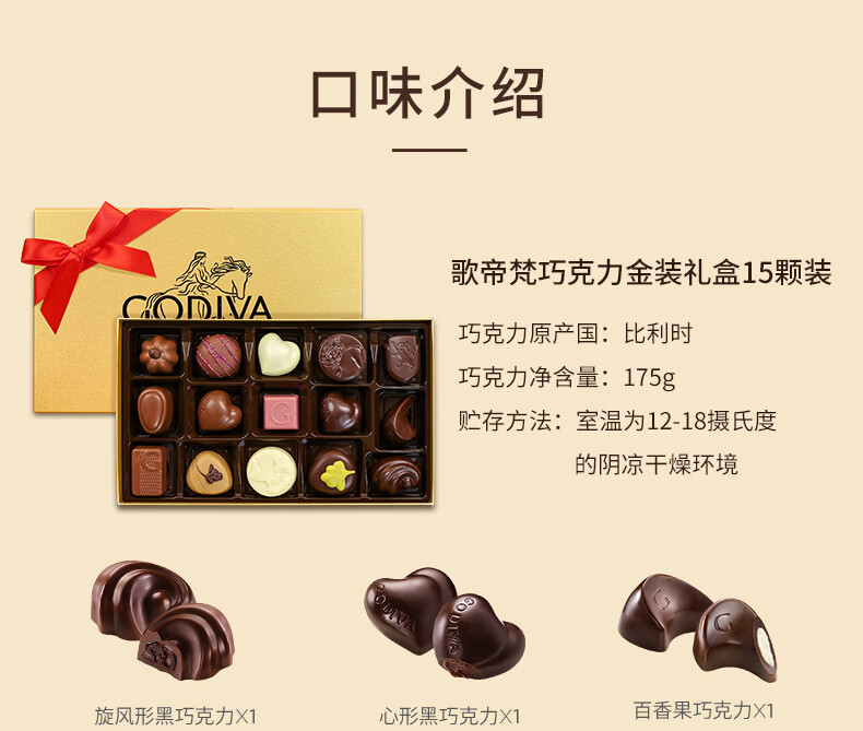 商品名称:歌帝梵(Godiva)巧克力礼盒 15颗175g 休闲零食 生日礼物送女友老婆闺蜜 伴手礼