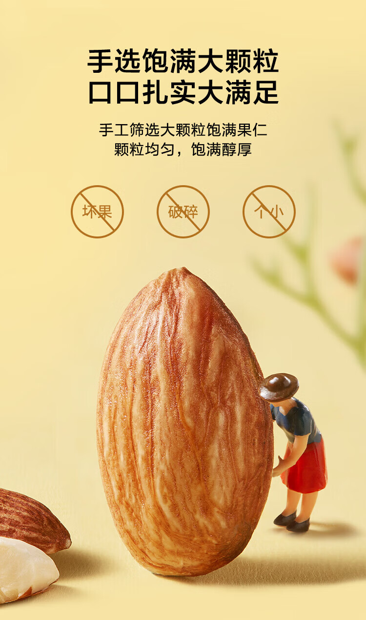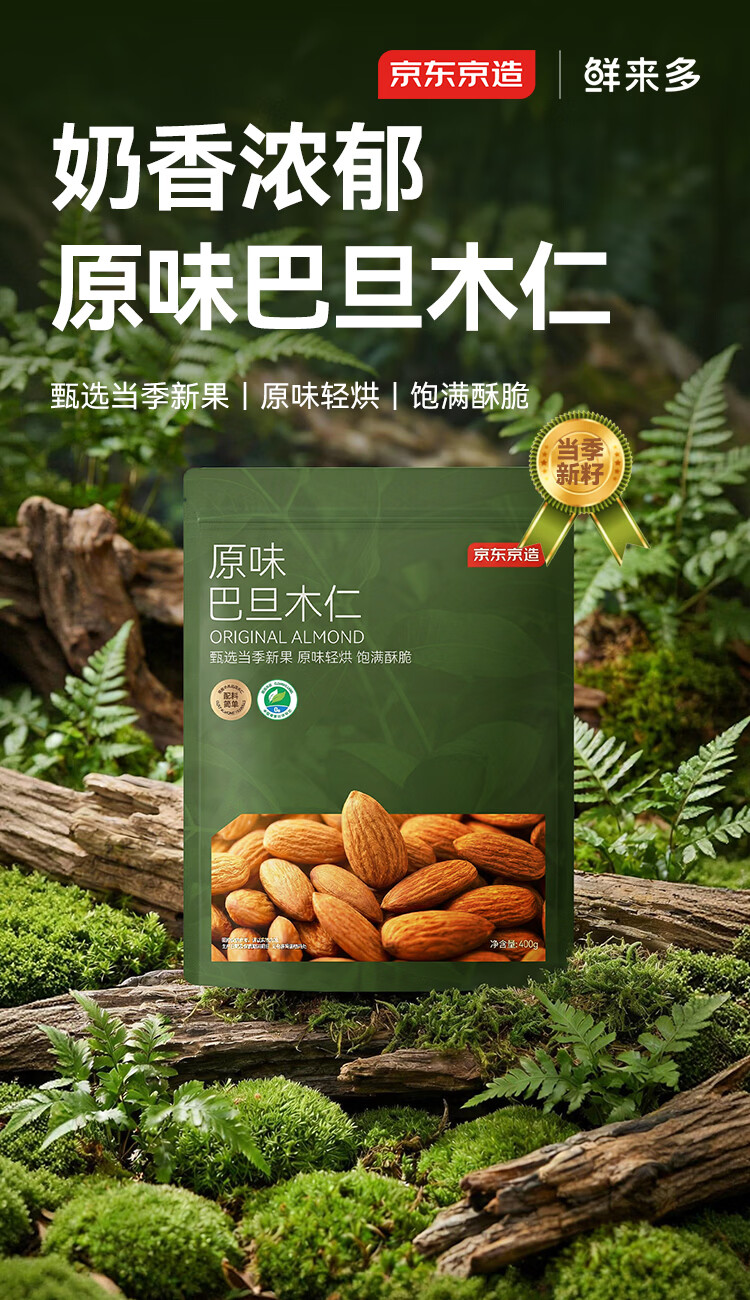 京东京造鲜来多原味巴旦木仁400g每日坚果干果扁桃仁杏仁零食炒货京东自营