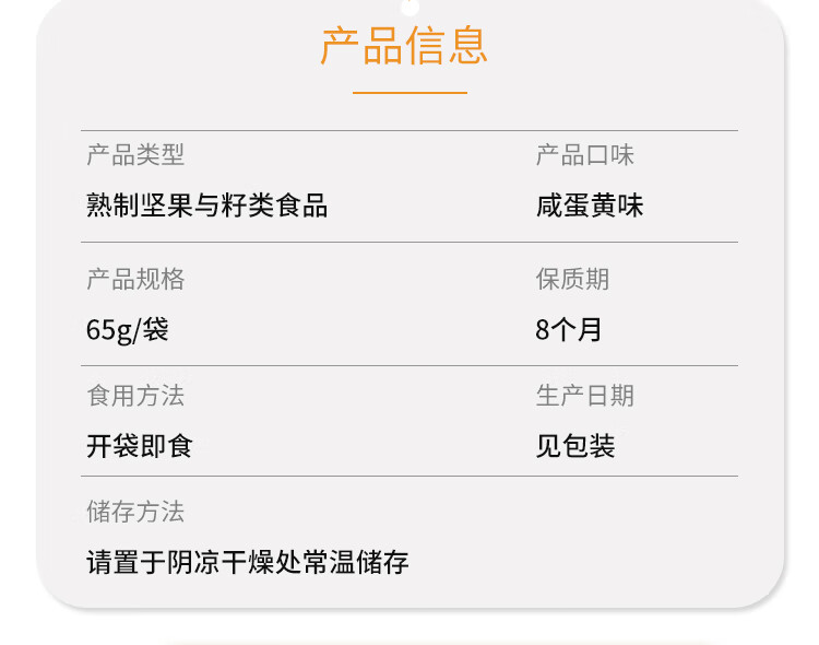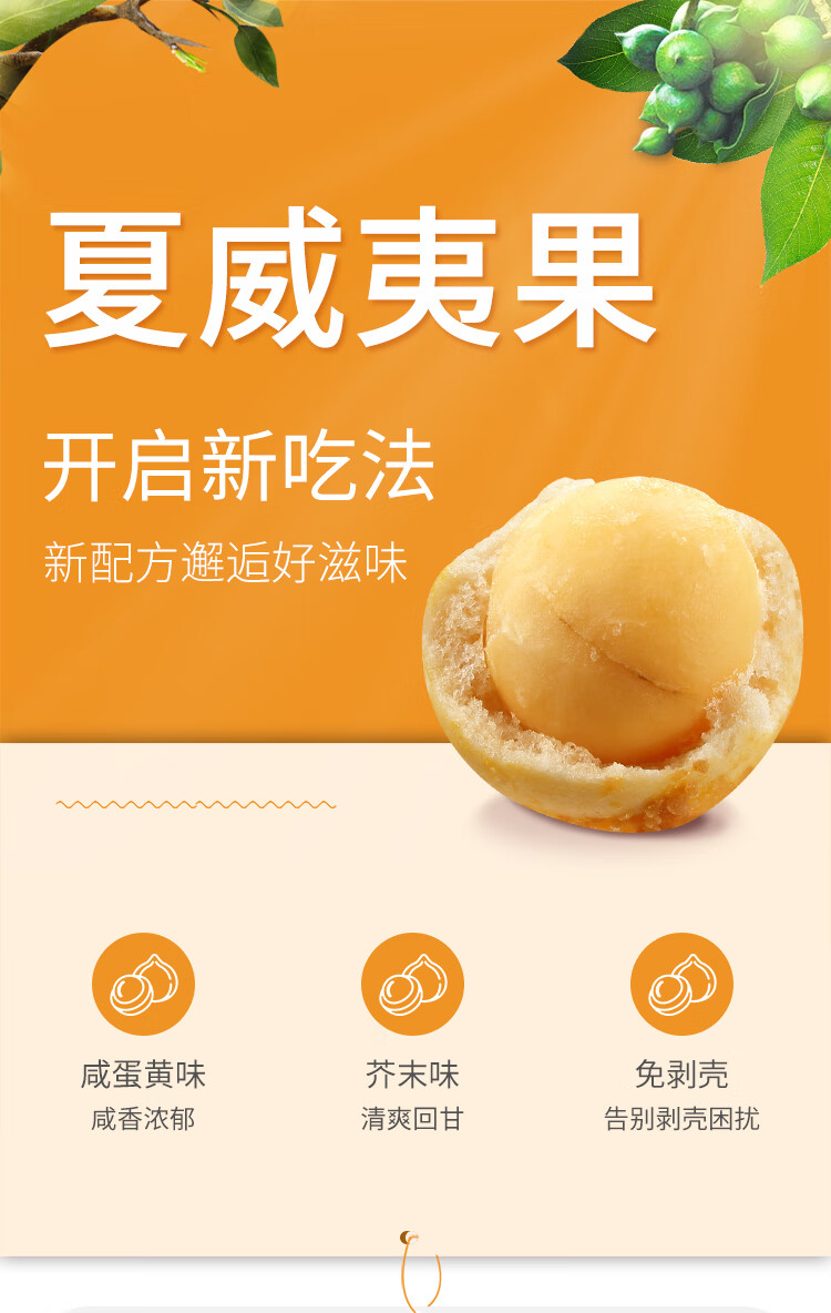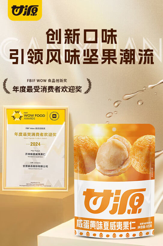 商品名称:甘源牌咸蛋黄味夏威夷果仁65g每日坚果炒货休闲零食风味果仁小吃年货