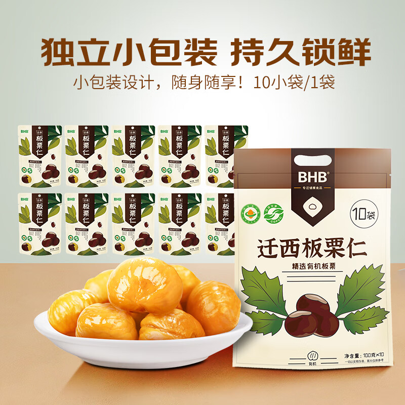 BHB 有机板栗仁1kg(100g*10袋)即食栗仁礼包坚果炒货休闲零食