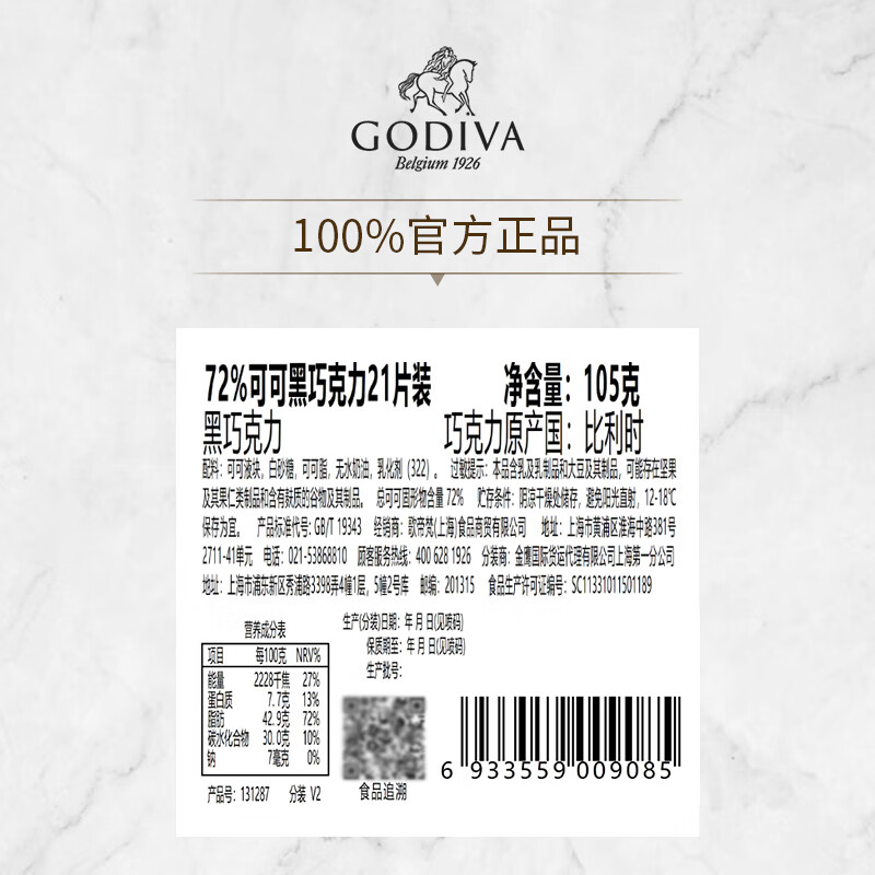 商品名称:歌帝梵(Godiva)72%可可黑巧克力片21片装105g 休闲零食糖果 送女友 健康黑巧