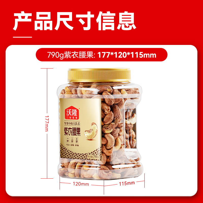 商品名称:沃隆紫皮腰果790g量贩罐装带皮腰果仁干果炒货烘焙零食炭烤大腰果