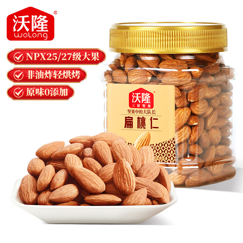 沃隆原味扁桃仁300g罐装巴旦木仁办公室解馋烘焙零食