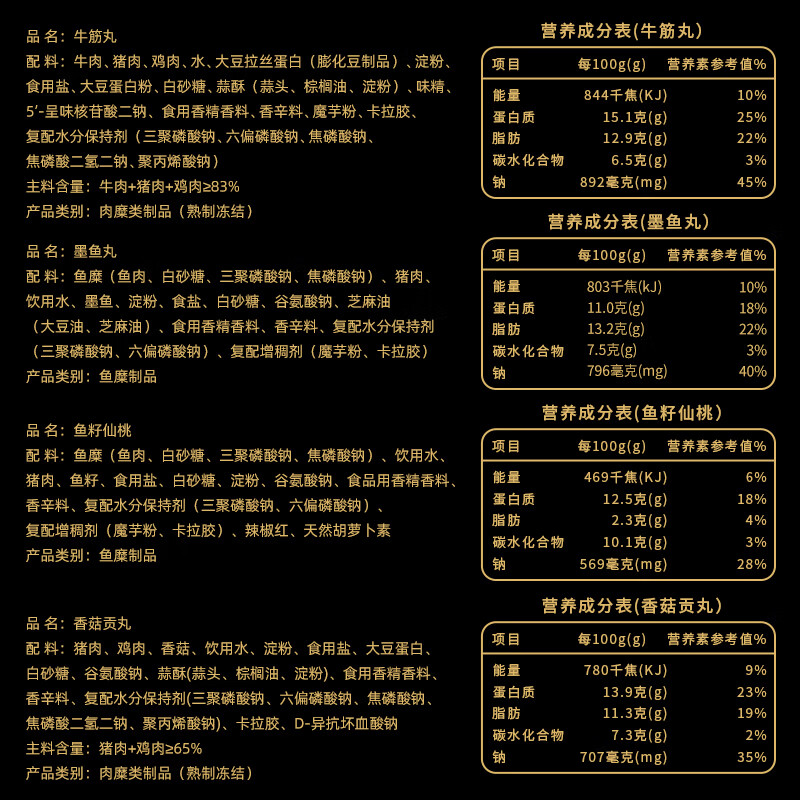 商品名称:喜得佳火锅食材套餐3斤装 潮汕手打牛肉丸子鱼丸部队火锅烧烤春节也送货