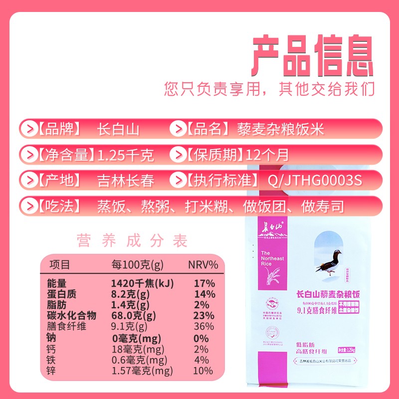 商品名称:长白山 藜麦膳食快熟杂粮饭 1.25kg