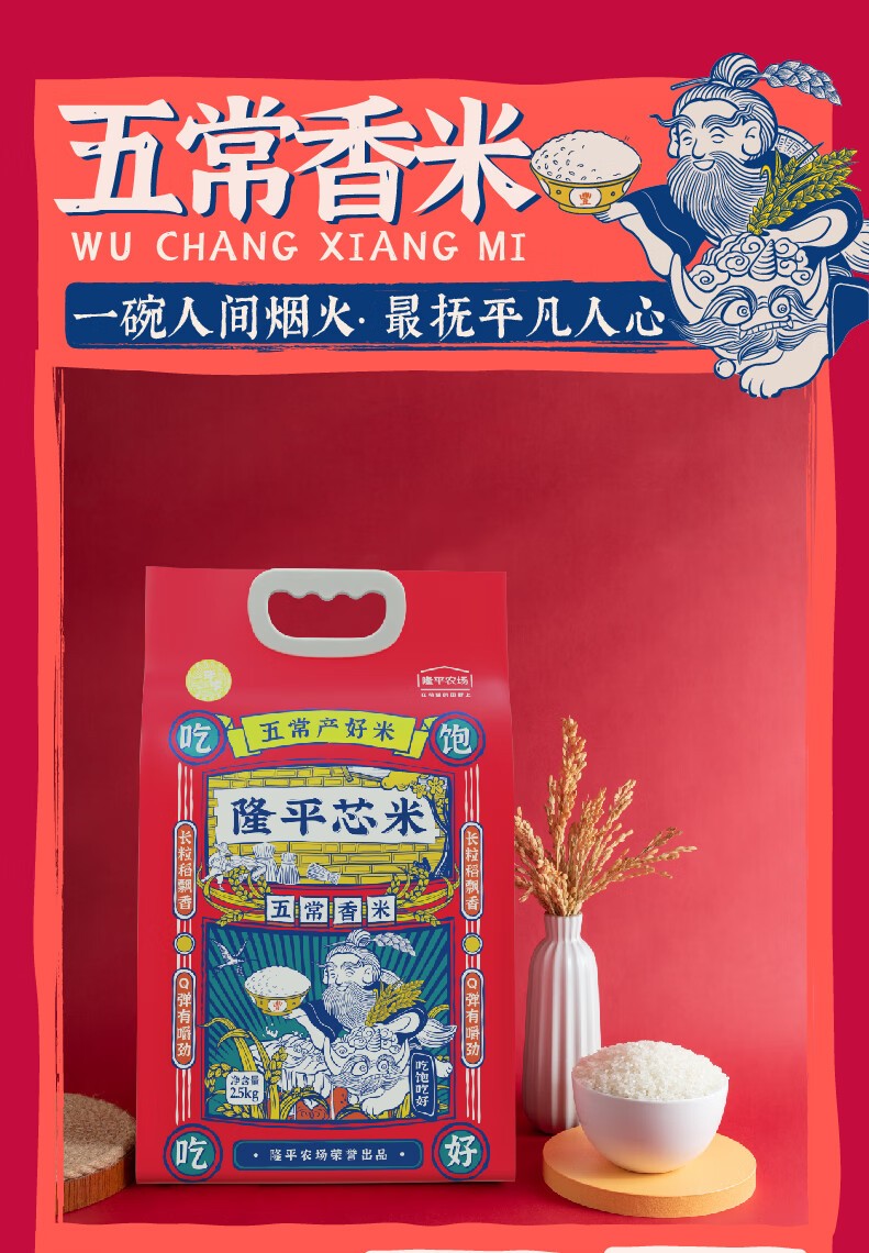 商品名称:隆平芯米袁隆平大米 五常香米 东北大米 生态长粒香米粳米 五常香米2.5kg