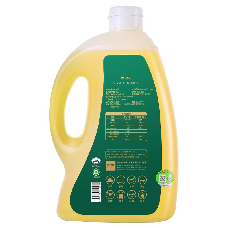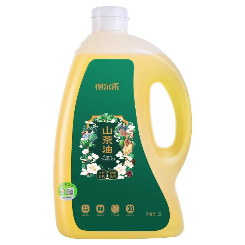 商品名称:得尔乐天然有机山茶油冷榨一级茶籽油农家炒菜有机冷榨山茶油3L