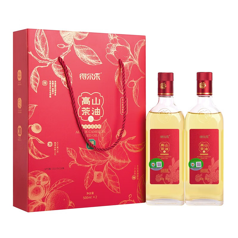 商品名称:得尔乐 有机高山红花低温山茶油礼盒500ml*2瓶 有机油茶籽油