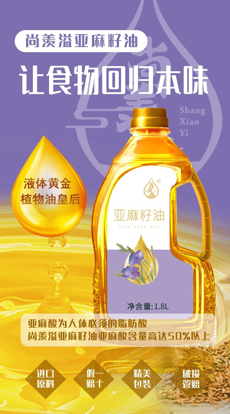 尚羡溢亚麻籽油家庭装1800ml【进口原料,一级压榨】
