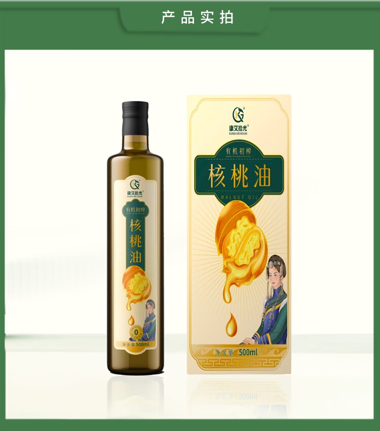 商品名称:康艾拾光有机初榨核桃油500ml单瓶装【来自大凉山,相约彝族情】