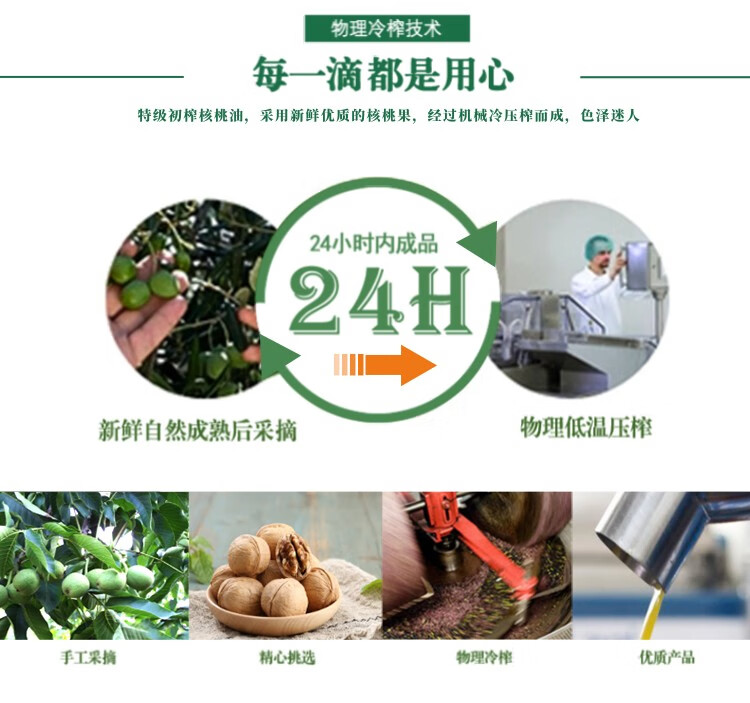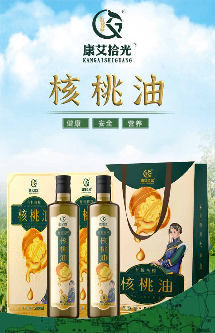 商品名称:康艾拾光有机初榨核桃油500ml*2礼盒款(天地盖)