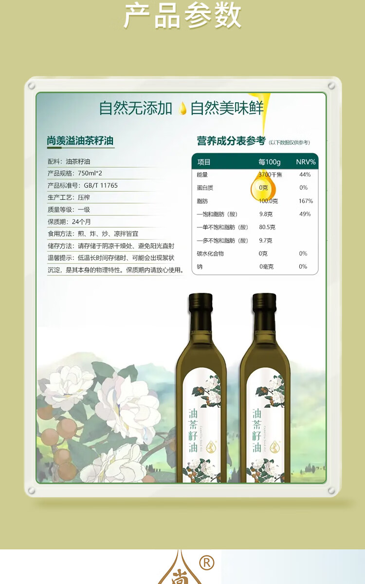 商品名称:尚羡溢油茶籽油礼盒装750ml*2