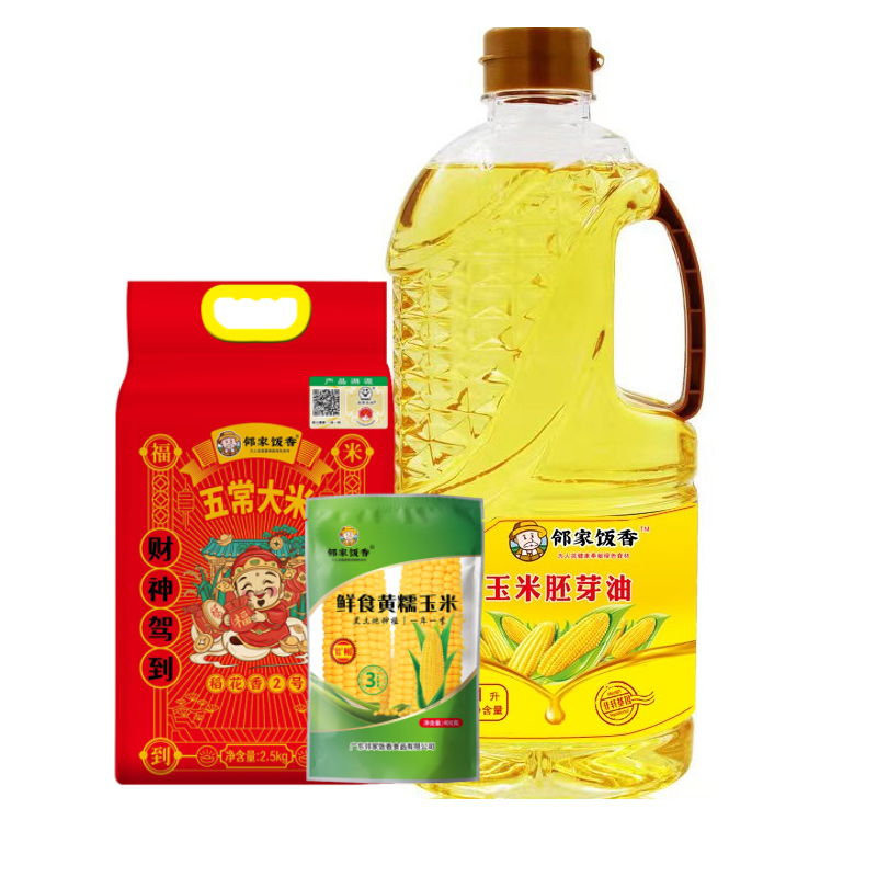邻家饭香米油大礼包 香玉米胚芽油1L+五常大米2.5KG+东北黄糥玉米200g穗*2穗