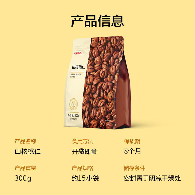 商品名称:京东京造鲜来多 山核桃仁300g 25年新货临安小核桃仁非油炸每日坚果送礼