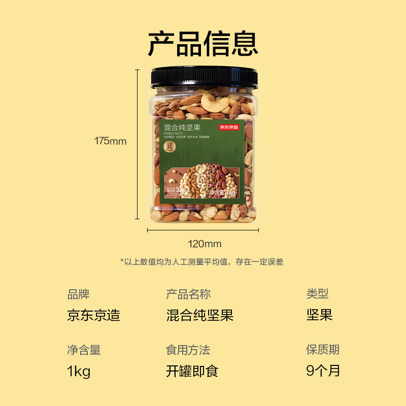 商品名称:京东京造鲜来多 原味混合纯坚果1kg每日坚果夏威夷果开心果碧根果腰果罐装
